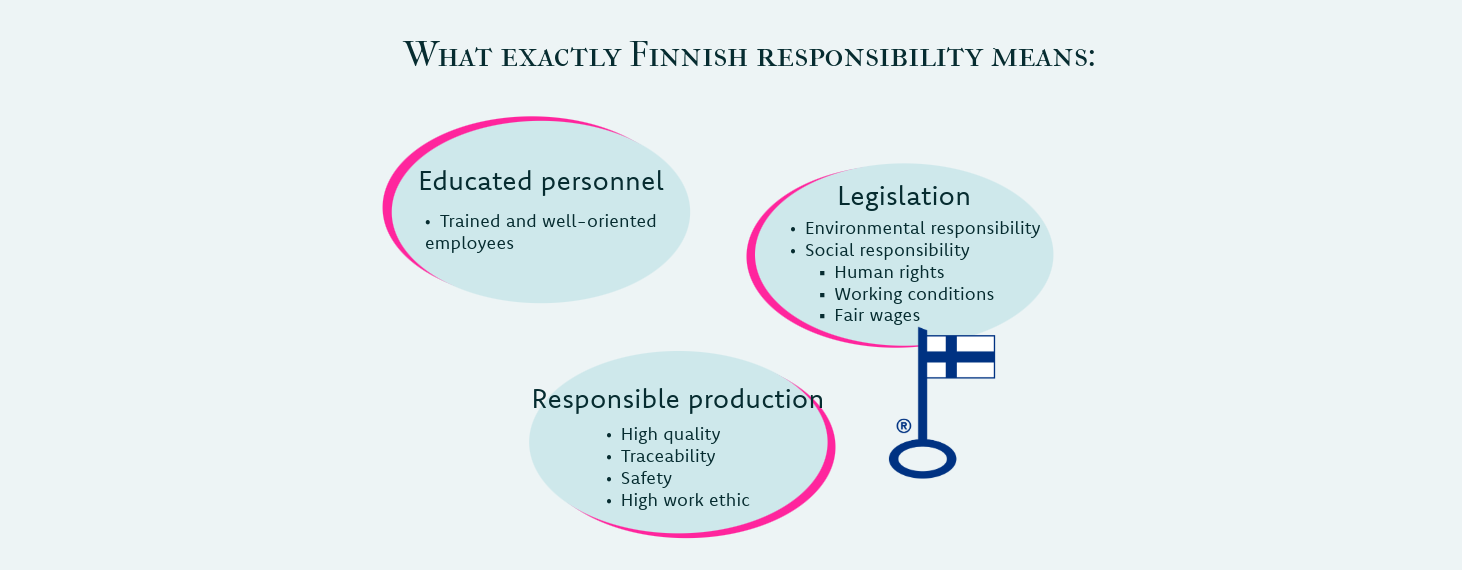 This symbol reflects our values and the principles that guide everything we do. It is a mark that shows the product has been produced in Finland and meets the strict standards set by Finnish labor authorities.