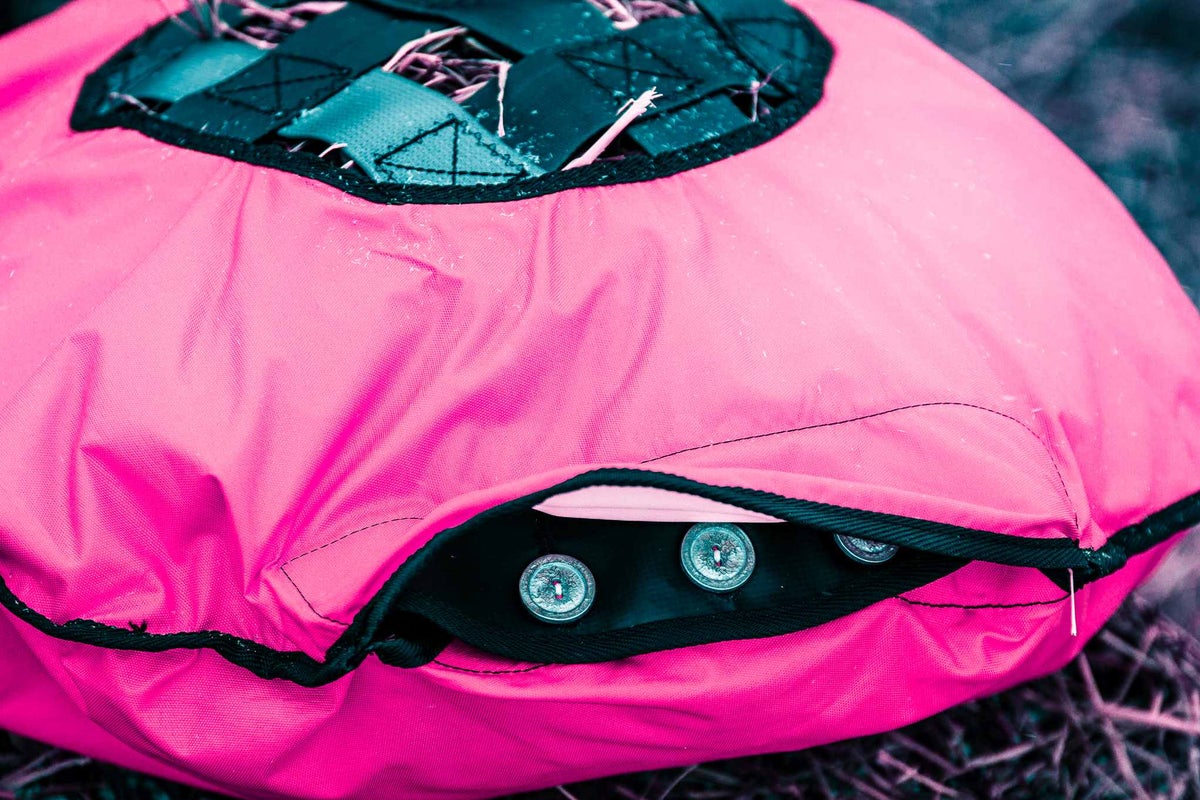 The materials used in the Mini Fluffy are water and dirt repellent. They keep the hay clean from bedding and soil. The net is made of seat belts of car industry and therefore it is totally unique and durable. The net size cannot be compared to other slow feeders on the market. It is typically more difficult for the equine to use. 4 cm net size can be used with dry hay or silage. If the hay is very short or straws are thick then we recommend to use the Fluffy Feeder with the bigger net size.